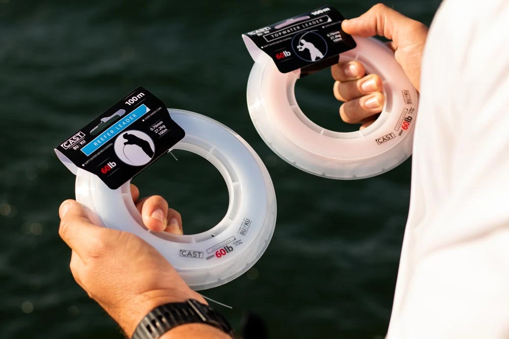 Cast Reefer Leader is a high-quality nylon leader manufactured with a special two-layer process that ensures the best strength and abrasion resistance whilst also maximising knot strength. This is achieved with a hard inner core and a micro coating of softer nylon on the outside of the Cast Reefer Leader, which allows knots to grab and bind extremely well without slippage.