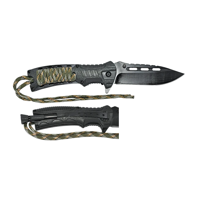 8.25″ Length    3CR13 Black Satin Blade   ABS/Rope Handle