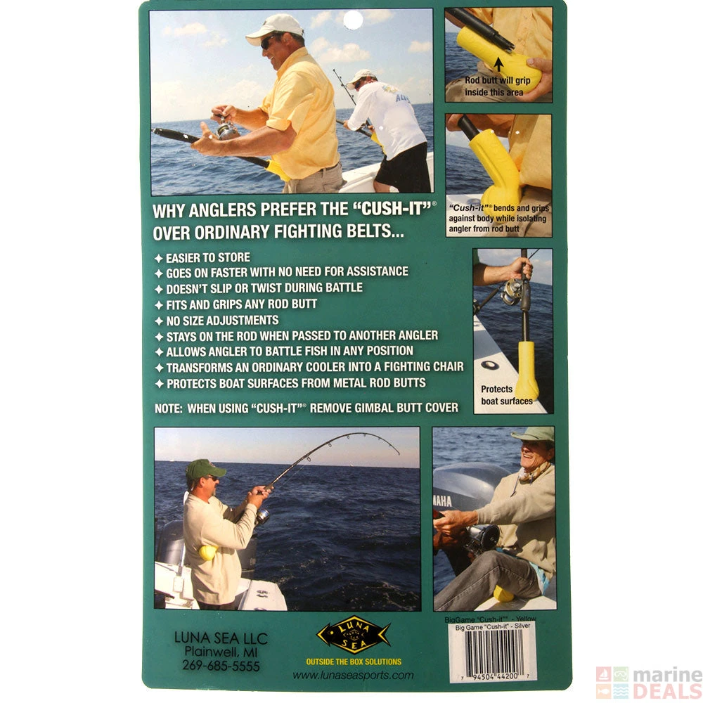 The cush-it™, by luna sea sports, is an easy, incredibly comfortable, lightweight, durable, premium foam fishing rod accessory! The Cush-it is the ultimate bruise stopper! Why risk your expensive fishing, rod and reel going overboard, never to be seen again, when you can easily add this affordable, lightweight, easy on & off premium foam cush-it to provide comfort and peace of mind… and even improve your fishing! It is UV resistant, saltwater resistant, and so light weight and comfortable!